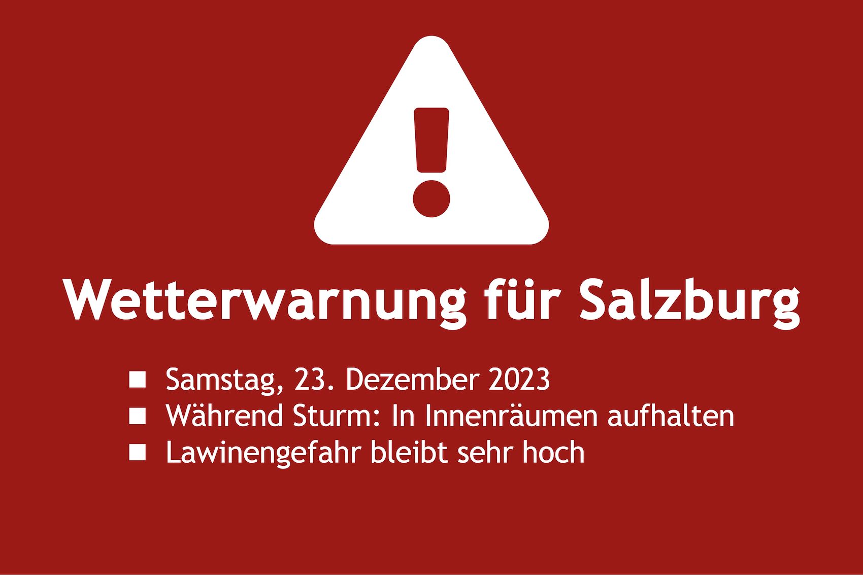 Der Katastrophenschutz des Landes hat soeben informiert, dass die Prognosen eintreffen und bis zum Vormittag des Heiligen Abends weiterhin mit starkem Niederschlag und Sturm zu rechnen ist. „Insbesondere von morgen Vormittag bis in den Nachmittag hinein können Windspitzen bis zu 90 km/h und punktuell darüber auftreten“, sagt der Leiter des Katastrophenschutzes des Landes Markus Kurcz.