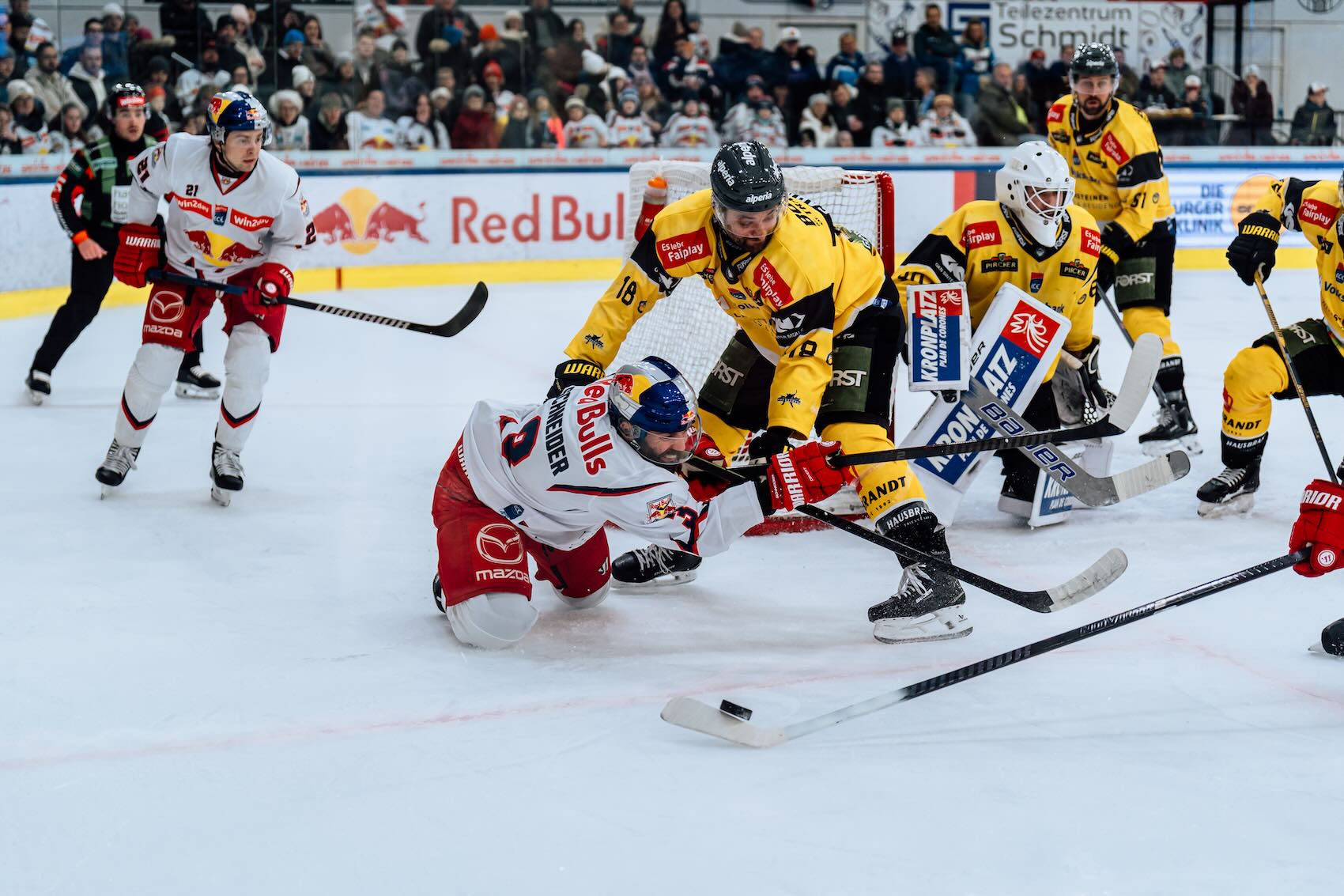 Die Lage hat sich weiter zugespitzt. Drei Runden vor Grunddurchgangsschluss wollen die Red Bulls noch möglichst viele Punkte sammeln, denn nach dem verschenkten Sieg gegen den VSV hat Salzburg zwar noch theoretische Chancen auf den zweiten Platz, gleichbedeutend mit der CHL-Qualifikation, muss jetzt aber vielmehr aufpassen, vom dritten Platz nicht noch verdrängt zu werden. Denn gleich dahinter lauert der HCB Südtirol Alperia und hat bei einem Spiel weniger nur zwei Punkte Rückstand.
