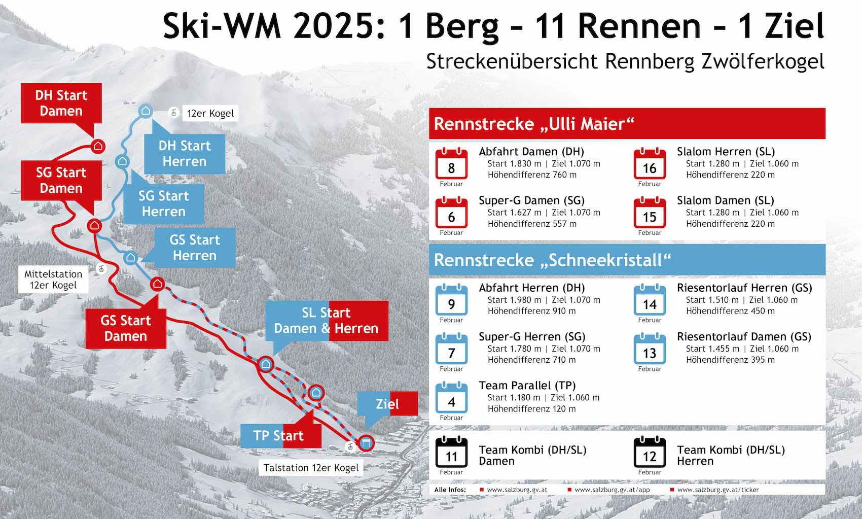 Am 4. Februar 2025, fällt in Saalbach-Hinterglemm mit der Eröffnungsfeier und dem ersten Bewerb der Startschuss für die Alpine Ski-Weltmeisterschaft 2025. Elf Mal werden Gold, Silber und Bronze vergeben, doch ein großer Gewinner steht bereits jetzt fest: Das SalzburgerLand.